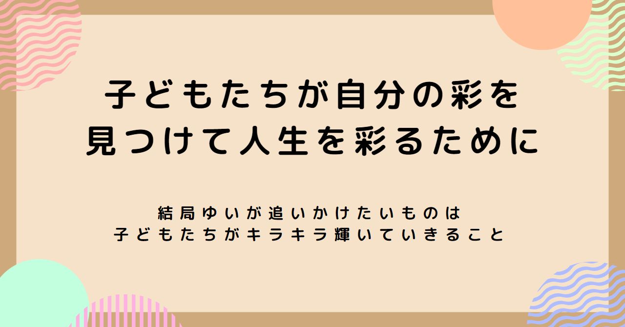 あとは普通に、自分の彩で人生を彩れている若者を増やして、そんな大人を見て子どもたちには成長してもらいたい。