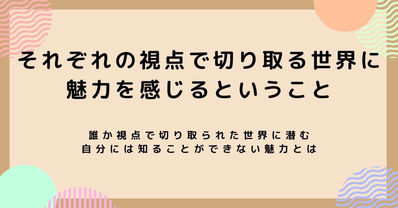自分じゃない切り取り方をした世界を知りたくて仕方がない。