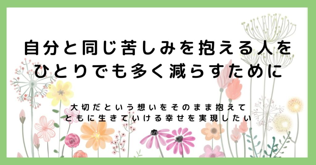 自分と同じ苦しみを抱える人をひとりでも多く減らすために
