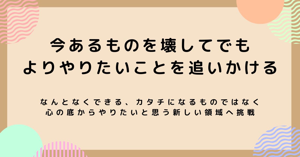 でも、今あるものを壊すのがすごく怖くて、自分の中で「できる」ものを捨てて、壊して、新しいものをつかみにいく勇気が出なかった。