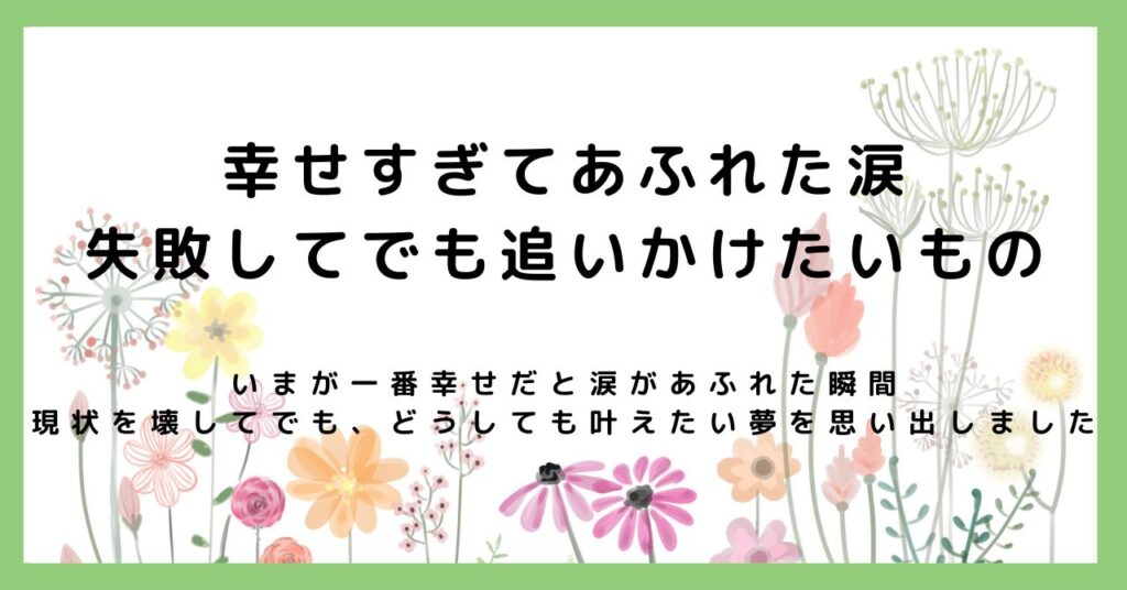 この夢を叶えるために生きていたんだなぁと思って、その夢は本質的にはまだかなってなかったんだなと思いました。
