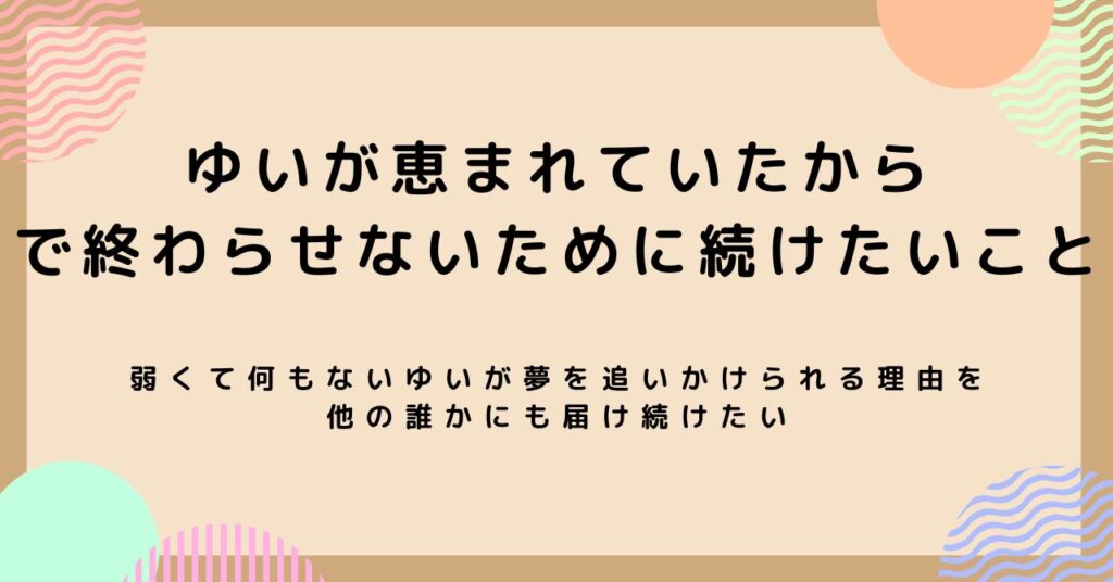 ゆいもずっと自分にはできない理由を探し続けて言い訳をし続けていた。