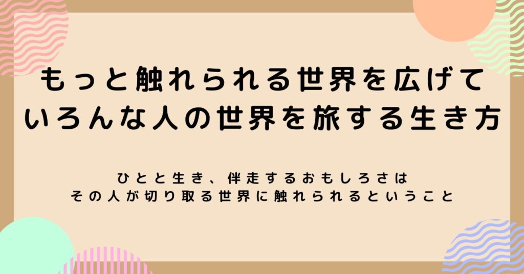 もっと触れられる世界を広げて、いろんな人の世界を旅し続ける生き方