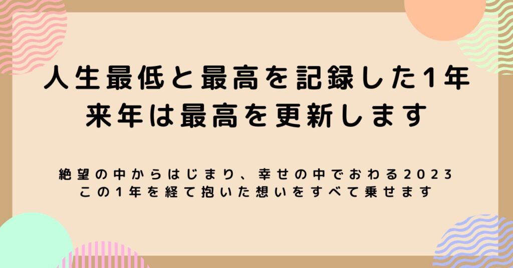 人生最低と人生最高を記録した1年。来年は最高を更新します。