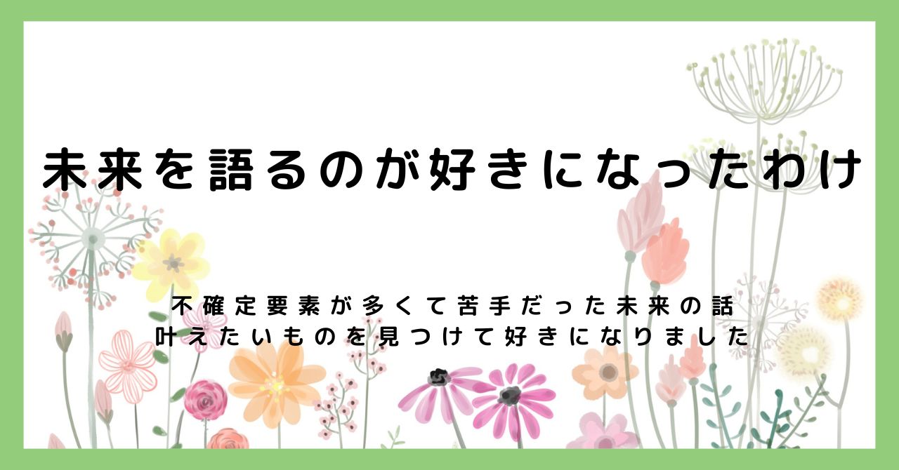 最近は未来の話をするのがワクワクして楽しくて仕方がない。