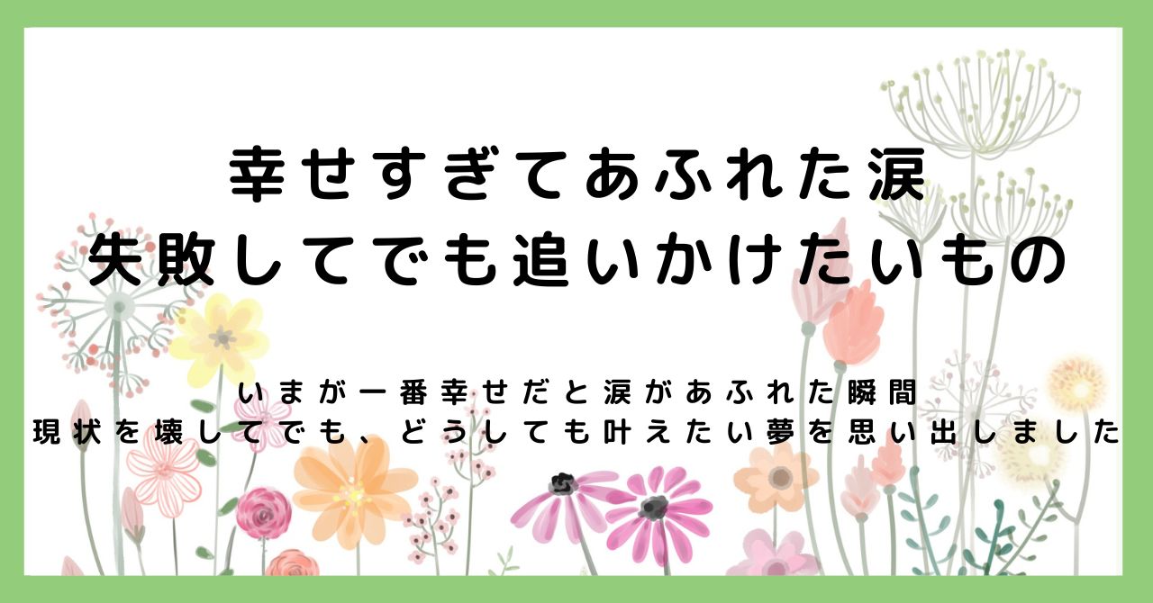 幸せすぎてあふれた涙。失敗してでも追いかけたいもの」への1件のフィードバック