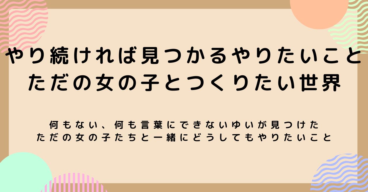 それくらい人生に開き直れる女の子を増やしたいし、成功に向けて一緒に走れるし失敗しても一緒に笑い飛ばせるような関係性を拡げていきたい。