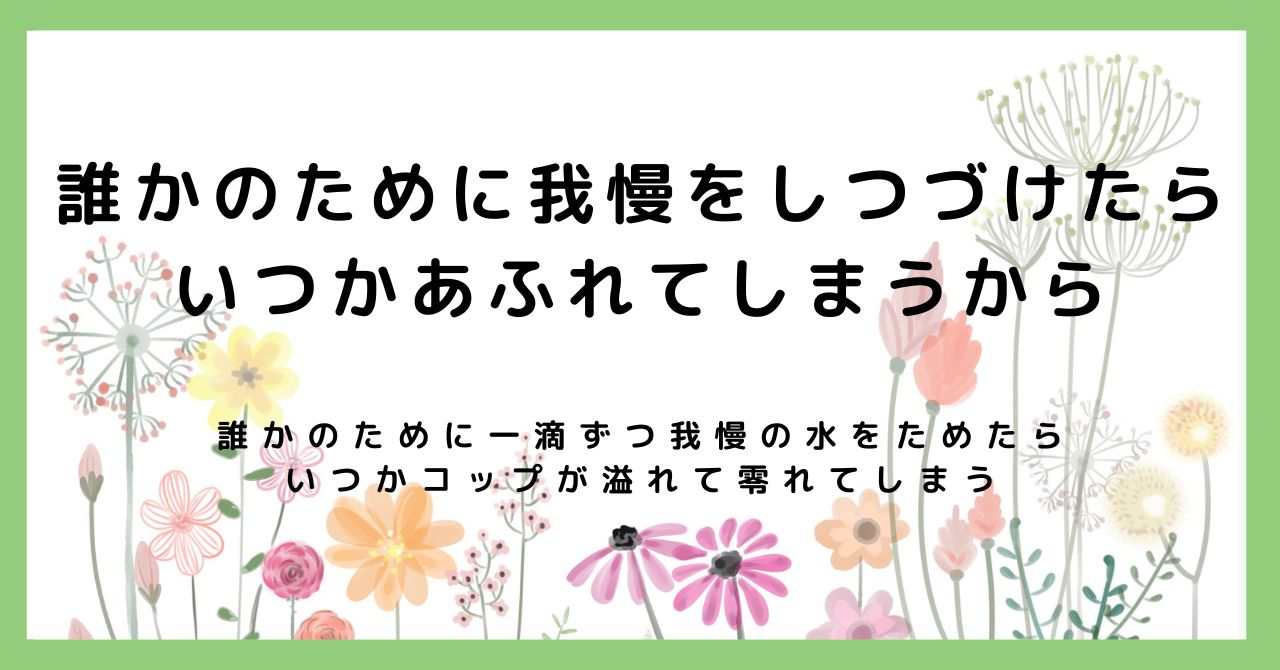でも、自分が我慢をしていると、幸せでちょっと解放されてもちょっとずつ自分のこころのコップギリギリまで我慢の水が溜まってしまう。